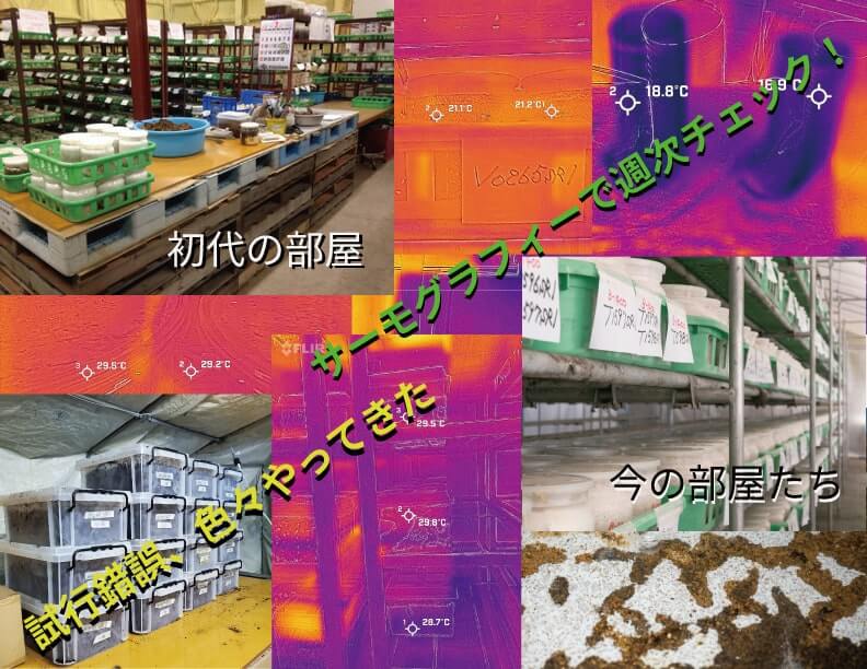 技術面は初期に飼育日記やブリーダーのページを読み漁り、最も効率的に上手く行きそうな手法(仮説)を組み立てた。その後は温湿度とブリード結果を見比べながら手法をアップグレードして行った。その過程で産卵、羽化サイズアップの確率が高くなる方法を見つけ、幾度かのピンチを乗り越えてきた。