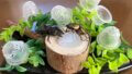 庭に植えているオリーブの木を一部切り取り、ヒメオオクワガタが好むヤナギの木に見立てたジオラマ標本になります。